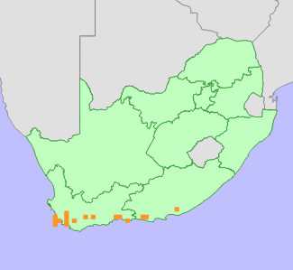 Range | This species is endemic to South Africa, and is widespread in the coastal mountains of the fynbos biome, from the Cape Peninsula to Port Elizabeth. |